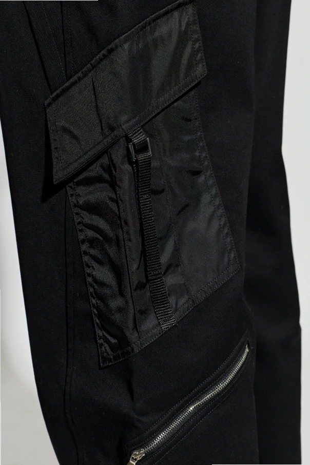 Prosty, luźny krój z lekko rozszerzaną nogawką podkreśla wygodę oraz swobodę ruchu, a starannie zaprojektowane szwy i przeszycia ujawniają kunszt wykonania. Spodnie wyposażone są w duże boczne kieszenie cargo z patkami i pionowymi zamkami błyskawicznymi oraz dodatkowy poziomy zamek niżej, co jest nie tylko praktycznym, lecz i dekoracyjnym akcentem. Z tyłu umieszczono dwie kieszenie z patkami, podkreślając funkcjonalność modelu.