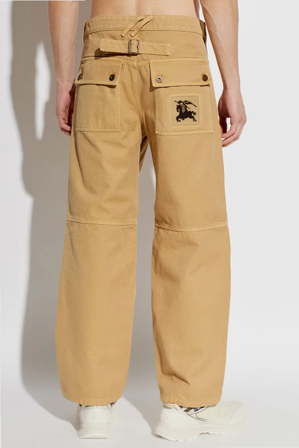Spodnie ‘Corban’ typu ‘cargo’ marki Burberry uosabiają wyszukany styl w bezkompromisowo eleganckim wydaniu. Wykonane z grubego, wytrzymałego płótna bawełnianego o splotach inspirowanych tkaniną canvas, zapewniają niezwykłą trwałość oraz szlachetną strukturę materiału. Delikatny, beżowy odcień nadaje im wyrafinowanej lekkości, czyniąc propozycję uniwersalną na każdą porę roku.