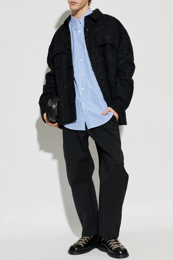 Fason o lekko oversize'owej linii z opadającymi ramionami gwarantuje nowoczesny, pewny siebie charakter, zaś klasyczny kołnierz koszulowy oraz długość sięgająca poniżej bioder świadczy o nienachalnej elegancji. Dwie duże kieszenie na piersi oraz starannie dobrane guziki czynią projekt harmonijnym, bez zbędnych logo czy kontrastów, akcentując szlachetność materiału.