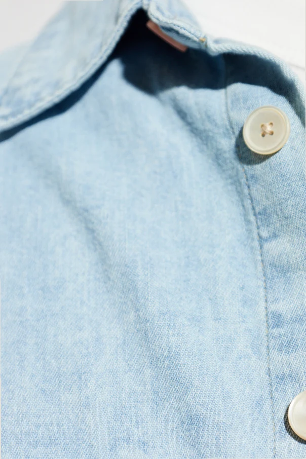 Przedstawiamy jeansową koszulę marki PS Paul Smith , wykonaną z doskonałej, wysokogatunkowej bawełny typu denim o subtelnie szorstkiej fakturze. Ten klasyczny model zachwyca prostotą kroju oraz lekko oversize’owym fasonem, perfekcyjnie układającym się na sylwetce. Harmonijną całość dopełnia jasnoniebieski odcień, który podkreśla ekskluzywny charakter ubrania.