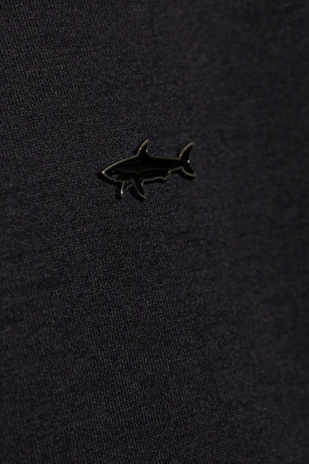 Wysmakowana czarna barwa dzianiny, będącej szlachetną kompozycją bawełny, nylonu oraz elastanu, gwarantuje nie tylko komfort noszenia, lecz także elegancję na najwyższym poziomie. Wzrok przyciąga subtelne, czarne logo w formie rekina, umieszczone na lewej piersi – dyskretny znak rozpoznawczy ekskluzywnej linii.