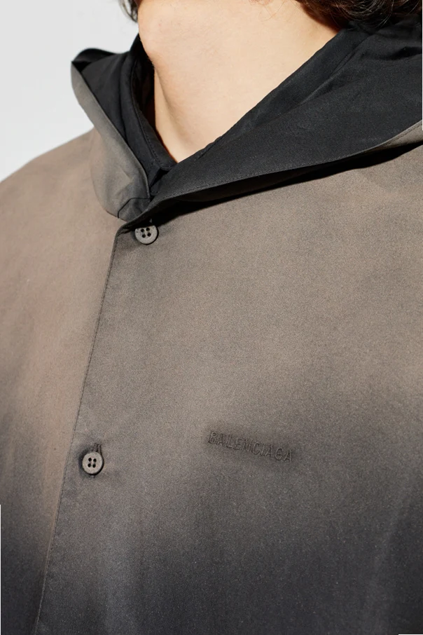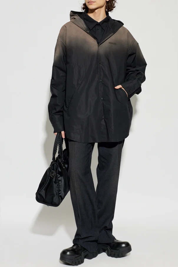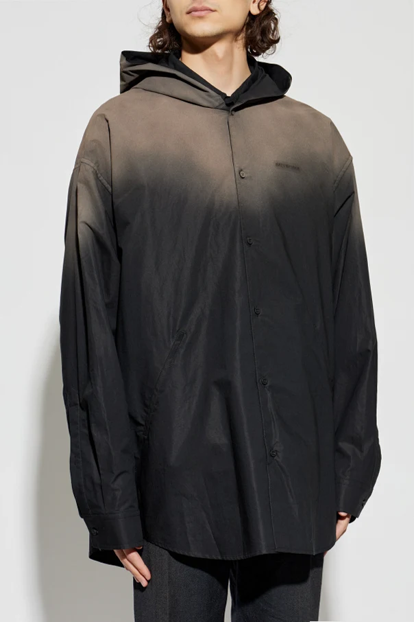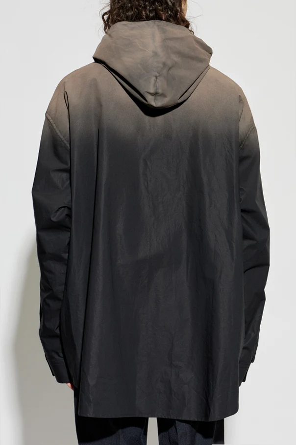 Koszula typu Oversize z kapturem to wykwintna propozycja dla koneserów nowoczesnych fasonów, w której czarny kolor oraz unikatowy efekt cieniowania „ombre” tworzą niezwykle wyrafinowane połączenie. Przemyślany, bardzo luźny krój z przedłużonymi, prostymi rękawami zapewnia maksymalną swobodę i lekkość noszenia, a całość sięga dyskretnie poniżej linii bioder.