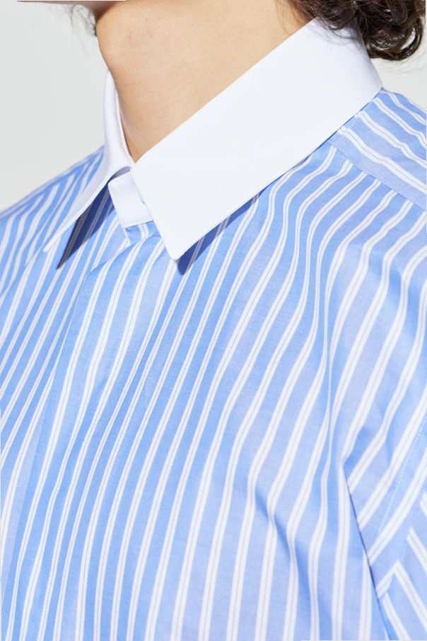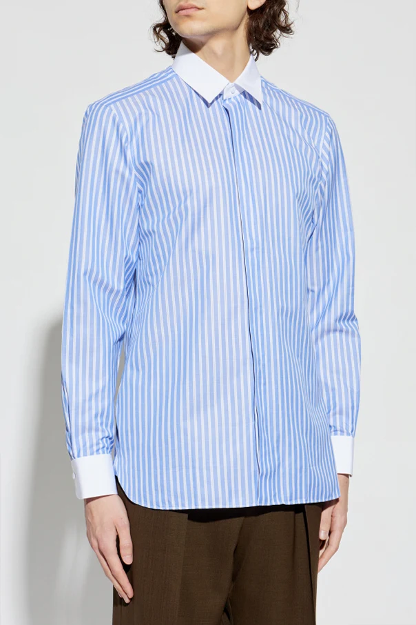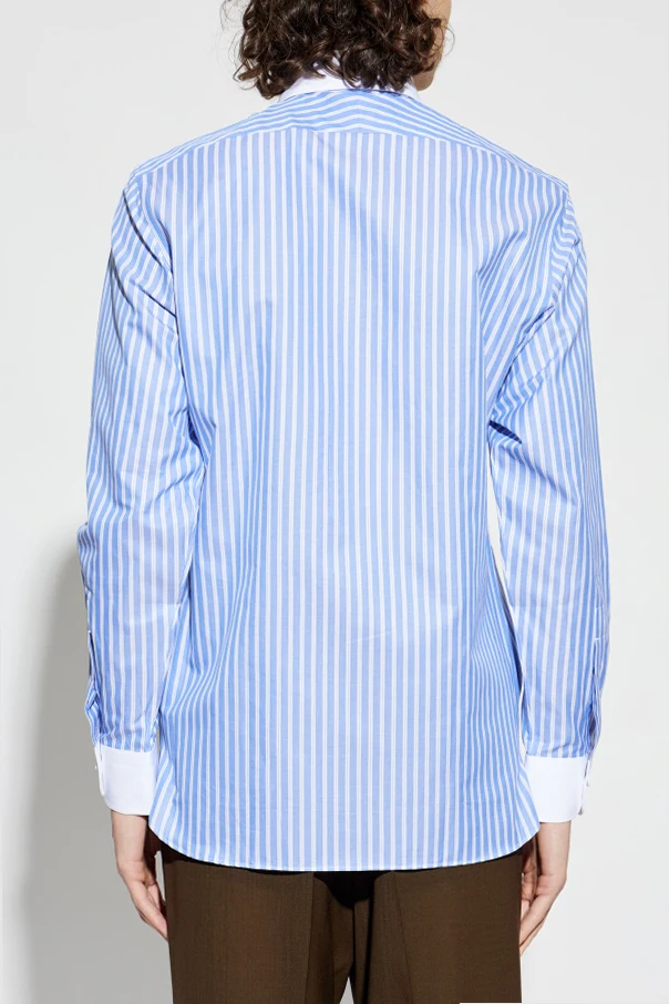 Koszula ze wzorem w pasy marki Tom Ford zachwyca wyrafinowaną elegancją i ponadczasowym stylem. Dominujące, niebieskie tło zdobią regularne, białe pasy, nadające całości klasycznego charakteru zarówno w wydaniu biznesowym, jak i casualowym. Wysokogatunkowa bawełna zapewnia niebywałą gładkość i lekkość, dzięki czemu noszenie koszuli staje się prawdziwą przyjemnością.