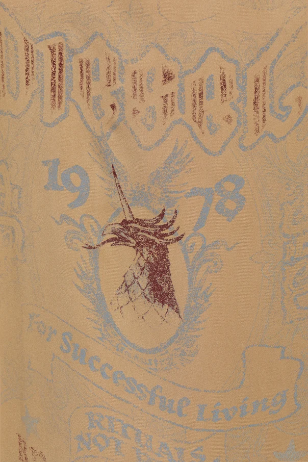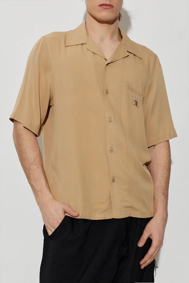 Klasyczny, otwarty kołnierz typu camp collar oraz prosty dół podkreślają casualowy charakter koszuli, natomiast drobne logo z przodu zachwyca dyskretną ozdobnością. Wyjątkowość produktu akcentuje tył — imponująca, wieloelementowa grafika z motywami marki i symbolem roku „1978”, świadcząca o artystycznym, unikalnym charakterze projektu.