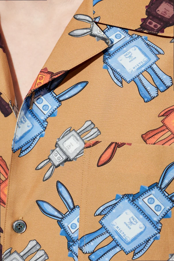 Koszula z nadrukiem autorstwa renomowanego domu mody MCM to propozycja dla mężczyzn ceniących wyrafinowaną swobodę. Wyróżnia ją klasyczny, luźny fason z krótkim rękawem i subtelnym kubańskim kołnierzykiem, nadającym kreacji nieco nonszalancji.