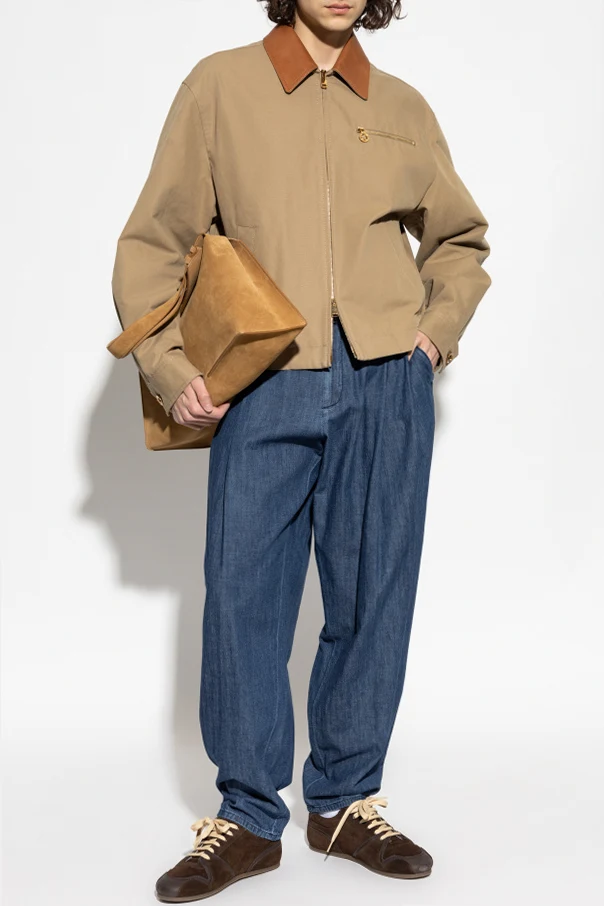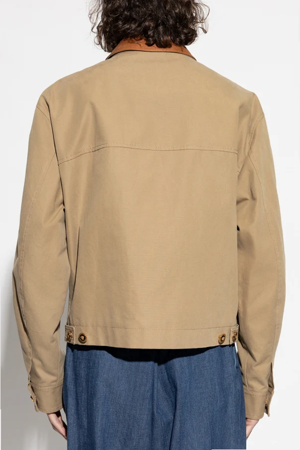 Kurtka ze skórzanym kołnierzem marki Versace to wyrafinowana propozycja dla osób ceniących ponadczasową elegancję i szlachetność detali. Prosty, lekko pudełkowy krój z delikatnie poszerzanymi ramionami harmonijnie współgra z gładką strukturą beżowej tkaniny, tworząc wyrazisty, ale nienachalny charakter całości. Zmysłowy akcent stanowi jasnobrązowy, licowy kołnierz z naturalnej skóry, który wyróżnia się na tle całości, podkreślając kunszt projektanta.