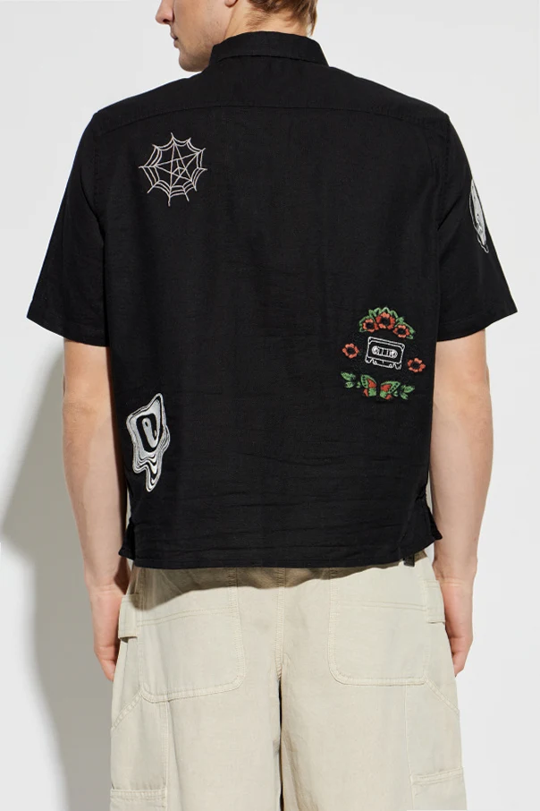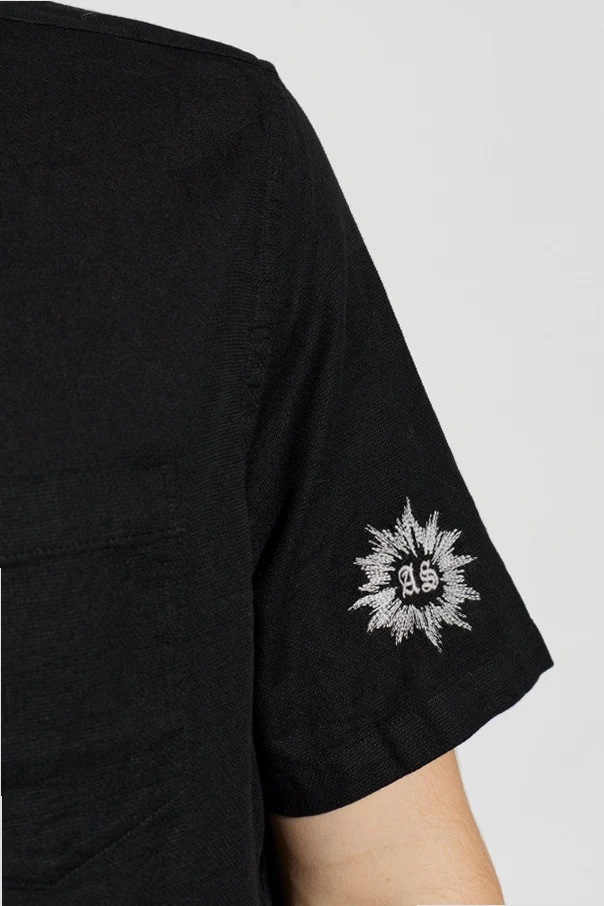 Głęboką, czarną barwę dopełniają bogate hafty: pajęczyny i florystyczne kompozycje zdobią przód oraz tył, a rękaw akcentuje motyw gwiazdy z napisem “A S”. Kieszonka na lewej piersi dopełnia całość, podkreślając użytkowy aspekt projektu.