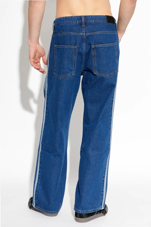 Jeansy z szerokimi nogawkami marki ADIDAS Originals to propozycja dla koneserek wyrafinowanego stylu, poszukujących ponadczasowych form i nowoczesnych detali. Wykonane z wysokogatunkowego, nieelastycznego denimu o mocno zarysowanej strukturze, gwarantują niepowtarzalny komfort oraz trwałość na lata.