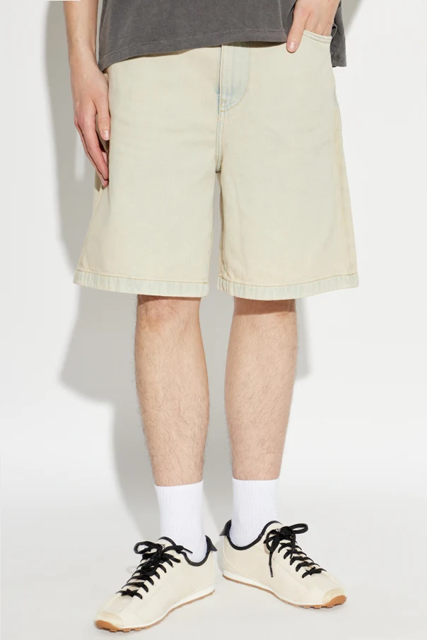 Klasyczny fason typu straight fit gwarantuje komfort oraz swobodę ruchu, natomiast charakterystyczny układ pięciu kieszeni z metalowymi nitami urzeka funkcjonalnością i dbałością o detale. Kontrastowe, jasnożółte przeszycia oraz subtelny efekt sprania przy szwach to elementy wyróżniające szorty na tle innych propozycji.