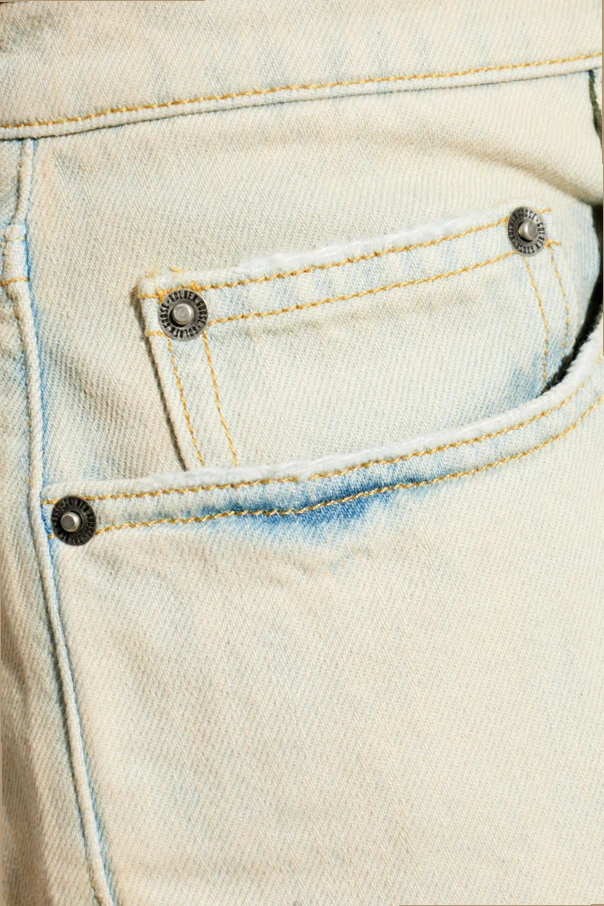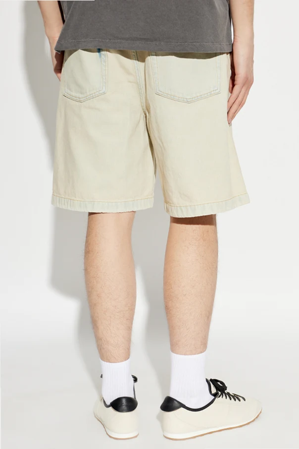 Kremowe jeansowe szorty marki Golden Goose to kwintesencja ponadczasowej elegancji skomponowanej z subtelnym, miejskim charakterem. Wysokogatunkowy denim o wyrazistej strukturze zapewnia nie tylko trwałość, ale i szlachetny wygląd, a szlachetnie kremowy odcień podkreśla uniwersalny styl produktu.