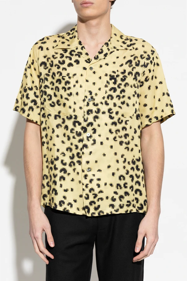 Rytm czarnych, geometrycznych cętek na żółtym tle – inspirowanych stylistyką lamparta, a zarazem zdekonstruowanych do postaci pikseli – stanowi unikatowe połączenie dzikiej natury oraz wyrafinowanego, cyfrowego modernizmu. Całości dopełniają eleganckie perłowe guziki oraz szeroki kołnierzyk typu kubańskiego, podkreślający nonszalancki charakter kompozycji.
