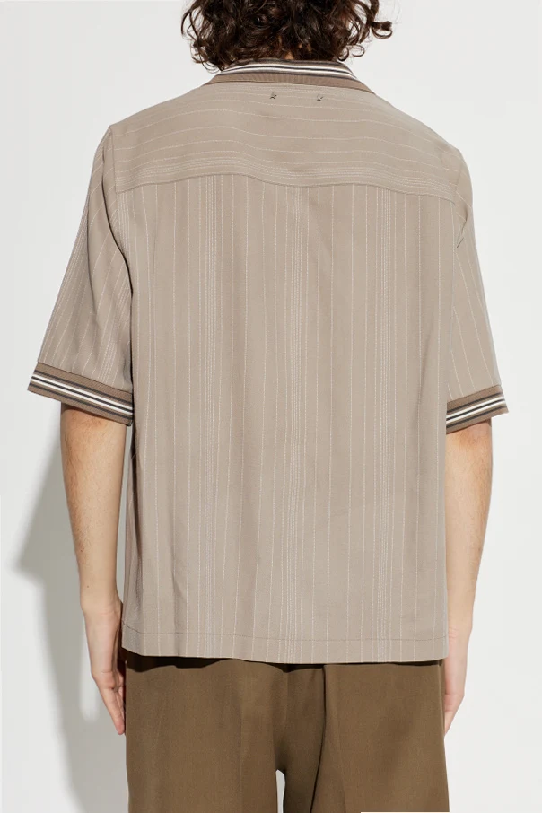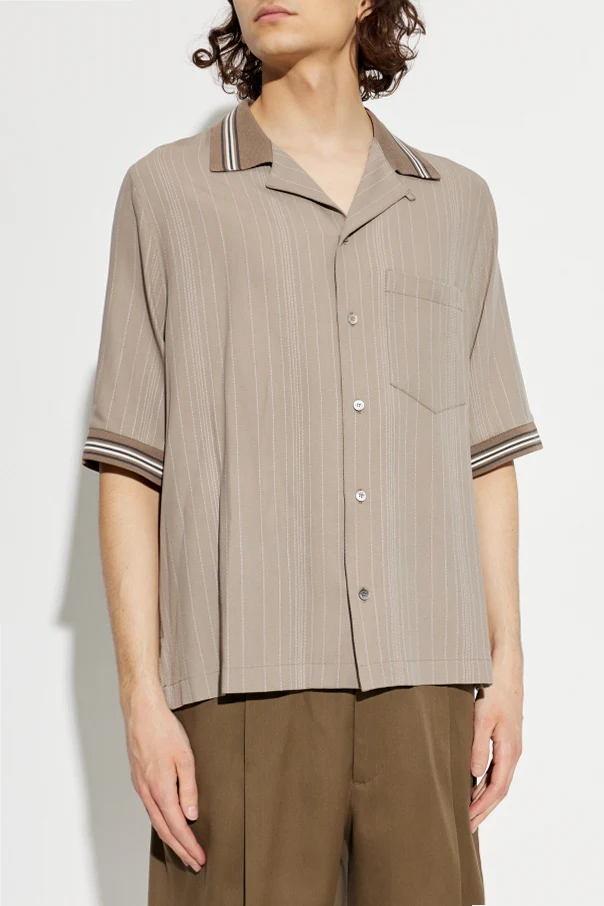 Jasny, beżowy odcień przełamany delikatnym wzorem pionowych prążków pięknie podkreśla swobodny fason koszuli, a klasyczny kołnierzyk oraz wykończenie mankietów i obrzeży kontrastowym paskiem w tonacji kremowo-brązowej podkreślają jej wysmakowaną estetykę. Oryginalny detal nawiązuje do ponadczasowego stylu vintage, będąc jednocześnie hołdem dla nieoczywistych inspiracji marki.