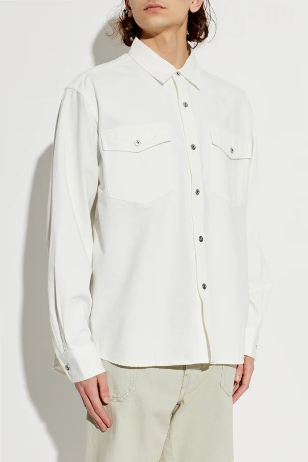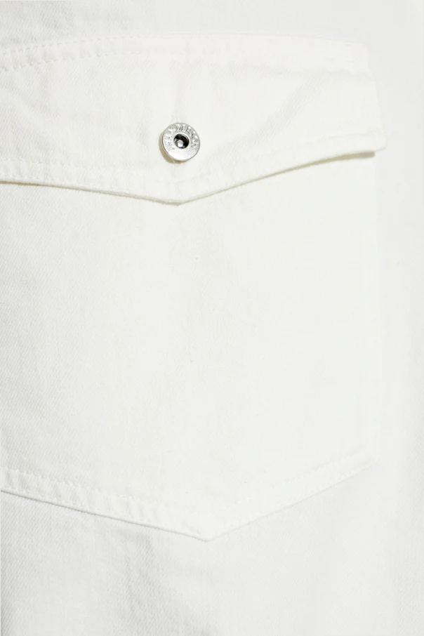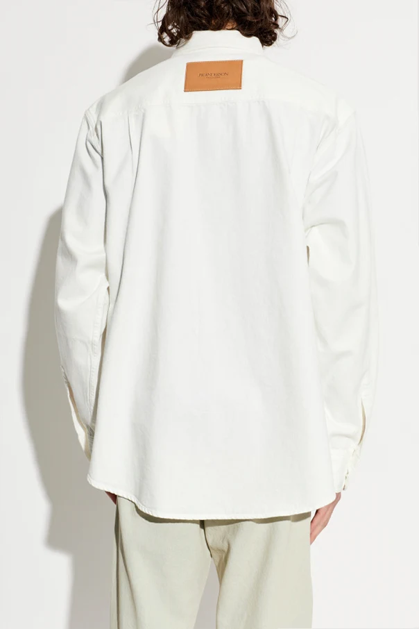 Jeansowa koszula od JW Anderson to wyrafinowana propozycja dla mężczyzn ceniących nowoczesną elegancję. Prezentowana w ponadczasowym, białym kolorze, wyróżnia się nieco oversize’owym krojem i klasycznym, wykładanym kołnierzem. Gładka, jednolita powierzchnia pozbawiona nadruków podkreśla jej minimalistyczny, lecz wyrazisty charakter.