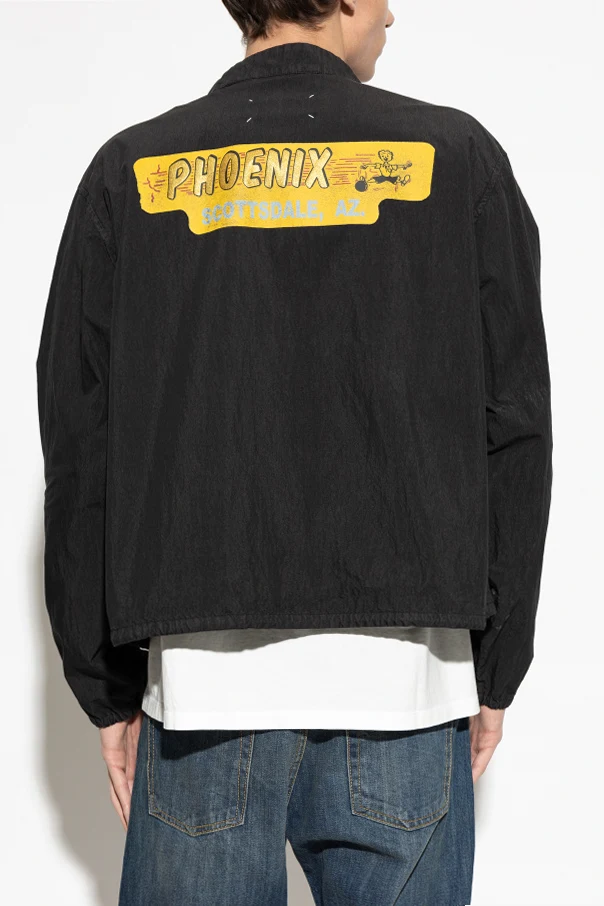 Kurtka z nadrukiem marki Maison Margiela to wyrafinowana interpretacja miejskiej nonchalanccji, łącząca swobodny kształt z niekwestionowaną awangardą. Model o prostym, luźnym kroju podkreśla ponadczasowy charakter, a stójkowy kołnierz zapinany na zatrzask zapewnia wygodę w każdej sytuacji.