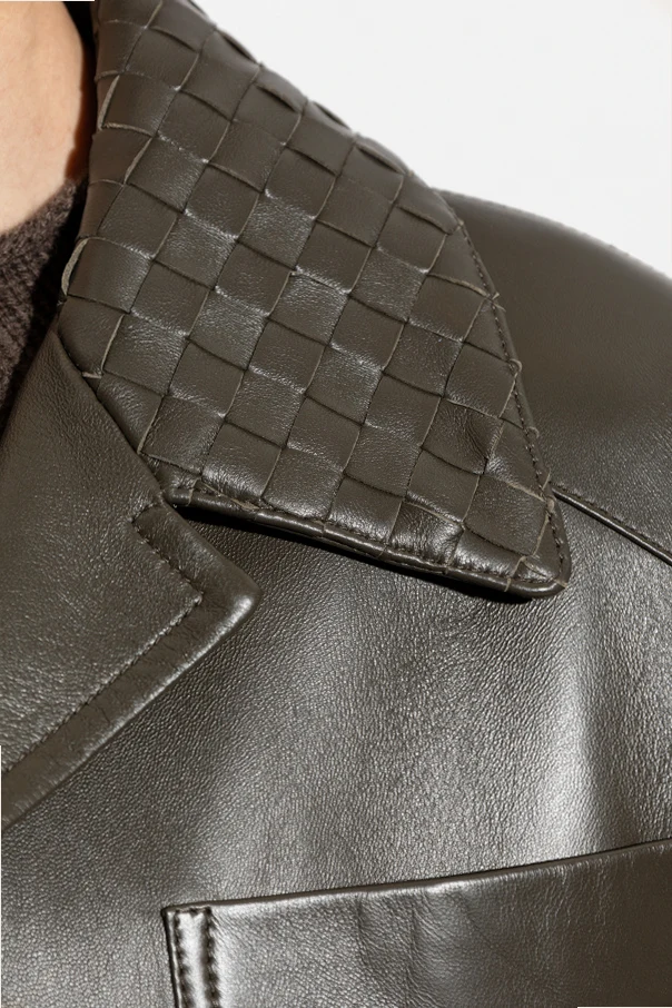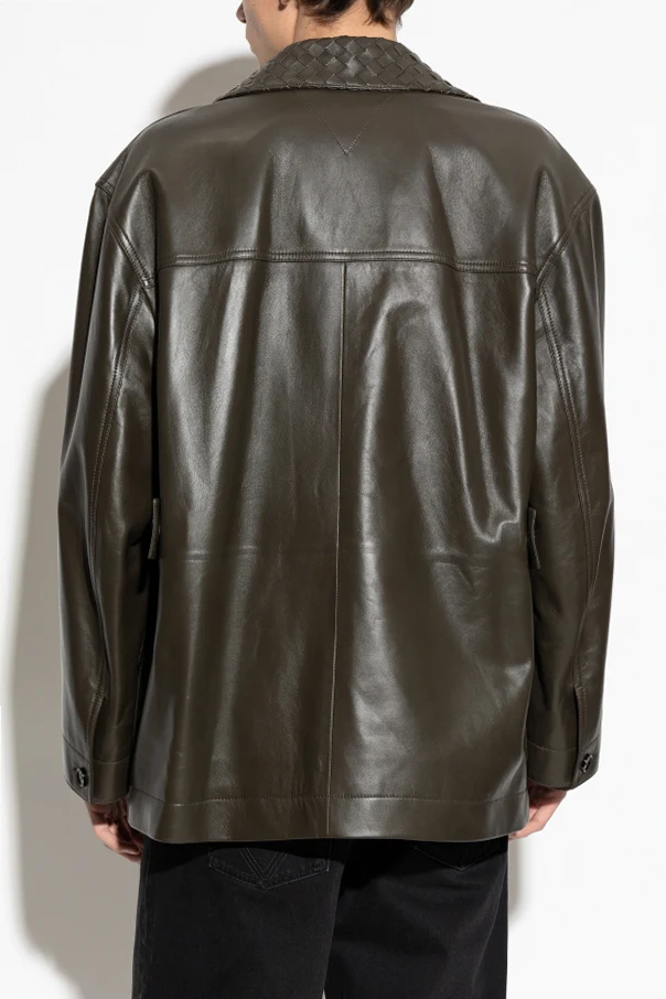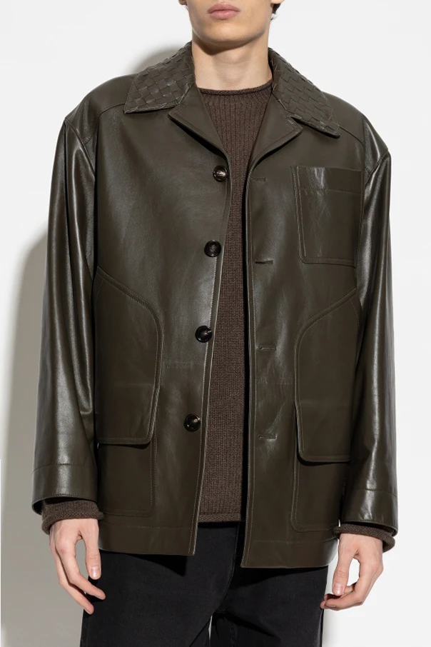 Kurtka ze skóry jagnięcej marki Bottega Veneta to wyraz wyjątkowego kunsztu rzemieślniczego i ponadczasowej klasyki. Jej zielony odcień podkreśla szlachetność materiału, a perfekcyjnie wyważony, lekko pudełkowy krój z dłuższymi rękawami subtelnie współgra z sylwetką, nadając całości nowoczesnego charakteru.