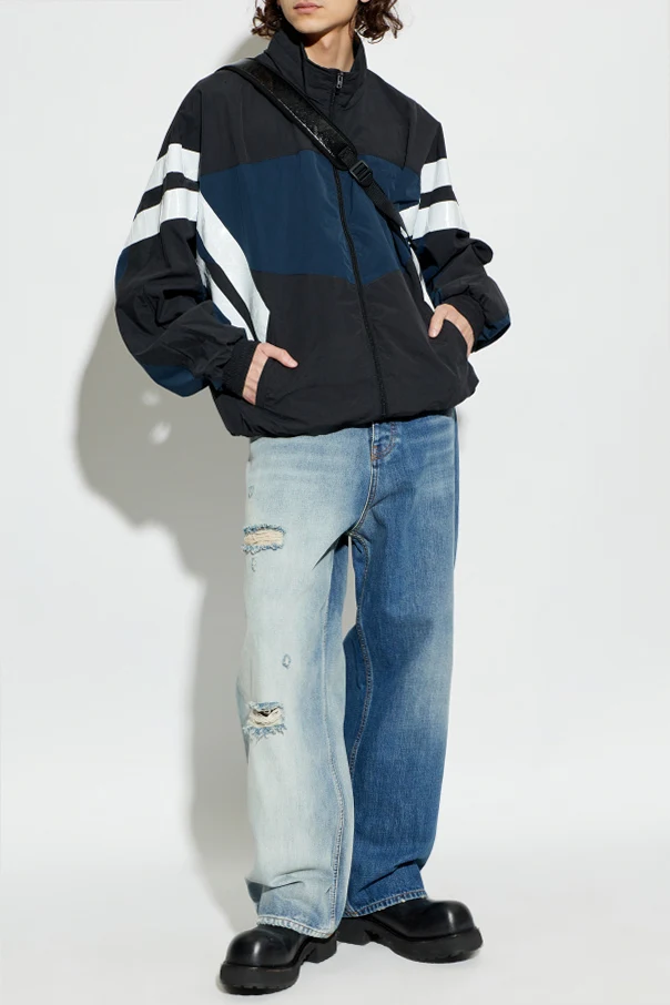 Kurtka typu „Oversize” marki VETEMENTS to wyrafinowane połączenie miejskiej nonszalancji i awangardowego designu. Fason charakteryzuje się swobodnym, szerokim krojem z obniżoną linią ramion, idealnie wpisując się w kanony współczesnej estetyki streetwearowej. Wysoki kołnierz typu stójka oraz zamek błyskawiczny na całej długości zapewniają funkcjonalność oraz komfort noszenia na co dzień.
