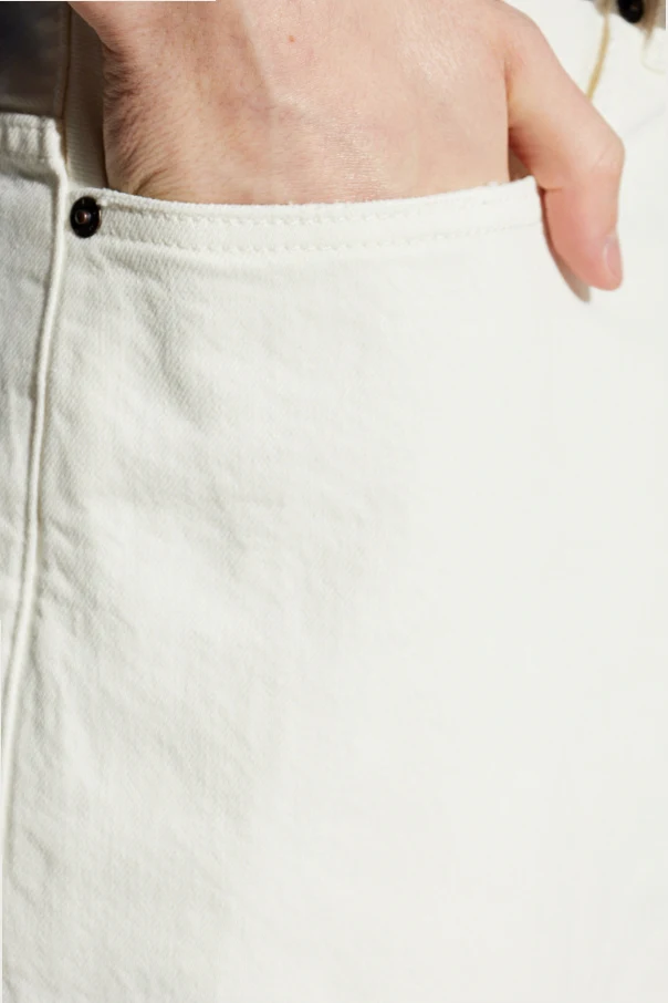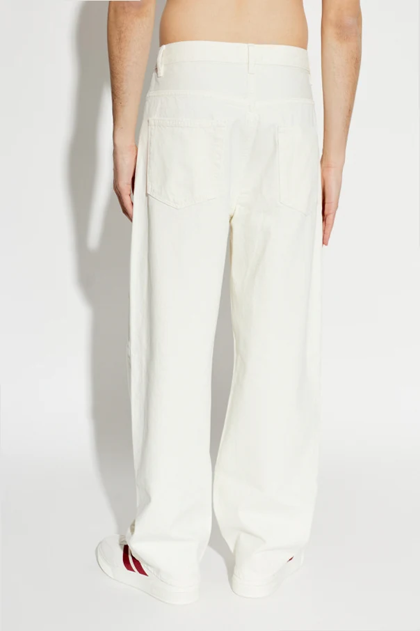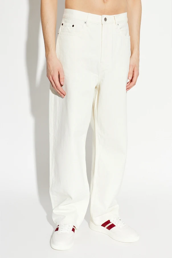 Jeansy typu „Baggy” w kolorze kremowym to propozycja dla koneserów wyrafinowanej prostoty i natury stylu. Ten zjawiskowo luźny, szeroki fason gwarantuje niezrównaną swobodę ruchu oraz pozwala emanować nieprzeciętnym luzem w każdej sytuacji. Klasyczny, minimalistyczny projekt podkreśla nieobecność nadruków i zbędnych zdobień, a gładka faktura szlachetnego denimu eksponuje subtelną, ziarnistą strukturę wysokogatunkowej bawełny.