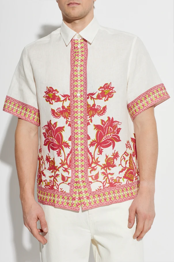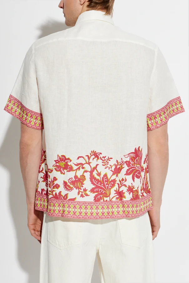 Lniana koszula z krótkimi rękawami marki Etro to wyraz subtelnej elegancji i wirtuozerii rzemiosła krawieckiego. Została wykonana z wysokogatunkowego, naturalnego lnu, którego wyraźna struktura nadaje całości niepowtarzalny charakter oraz gwarantuje przewiewność nawet w najbardziej upalne dni.