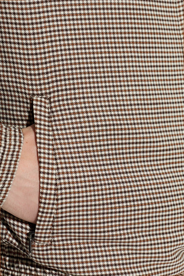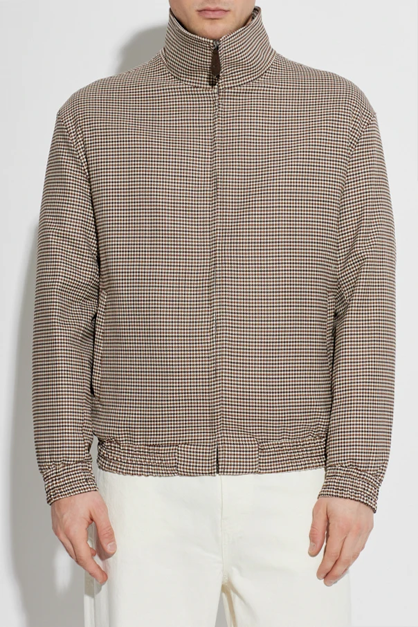 Ocieplana kurtka ze wzorem w kratę marki Etro to synonim wyrafinowanego wzornictwa i ponadczasowego stylu. Brązowy kolor, subtelnie zestawiony z regularnym motywem drobnej, białej kraty gingham, tworzy harmonijną całość o wyrazistym, męskim charakterze. Klasyczny, prosty krój z elastycznymi ściągaczami podkreśla elegancję oraz komfort noszenia, a wysoki kołnierz typu stójka chroni przed wiatrem, zapewniając ciepło nawet w chłodniejsze dni.