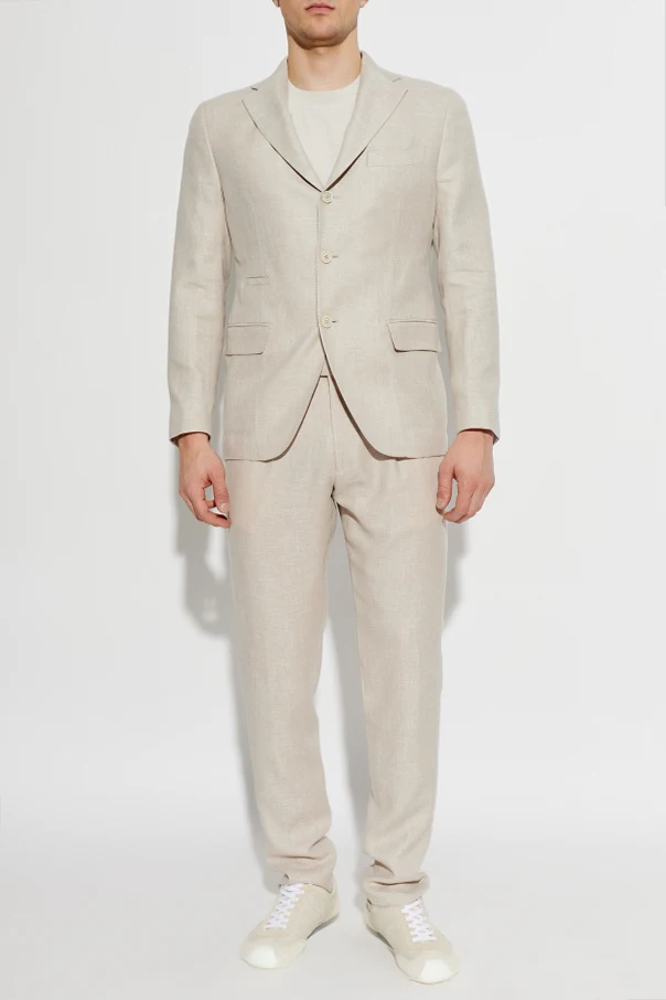Garnitur z podwójnym rozcięciem marki Eleventy to kwintesencja współczesnej elegancji męskiej. Utrzymany w subtelnym kremowym odcieniu, wyróżnia się dopracowaną sylwetką – marynarka o lekko taliowanym kroju oraz proste, zwężane spodnie tworzą spójną całość o wyjątkowej lekkości.