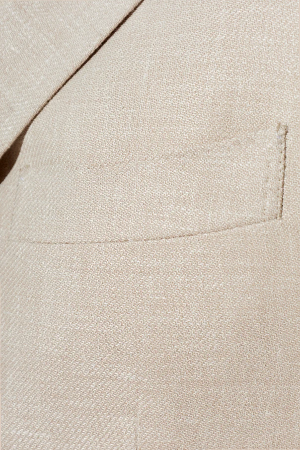 Marynarka wyposażona została w zapięcie na trzy stylowe guziki, klasyczne szerokie klapy i trzy kieszenie – dwie z patkami oraz subtelną kieszeń na piersi. Rękawy regulowane eleganckimi guzikami to element wykończenia godny najbardziej wymagających.