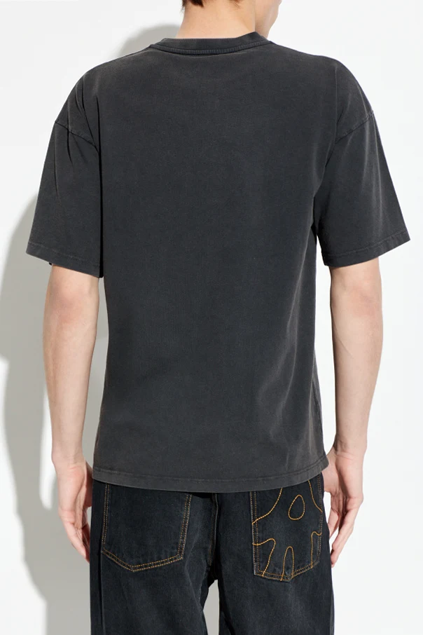 T-shirt z logo marki AVAVAV to wyraz nieprzeciętnego stylu zamknięty w formie klasycznego, oversize’owego fasonu. Model cechuje się luźnym krojem , krótkimi rękawami oraz starannie wykończonym, okrągłym dekoltem, harmonijnie łączącym wygodę noszenia z nowoczesną formą.