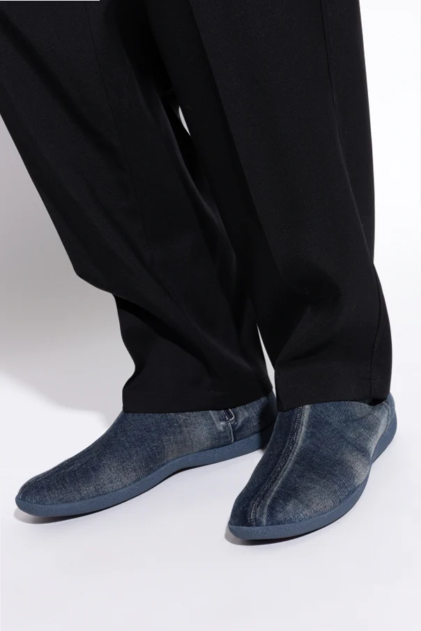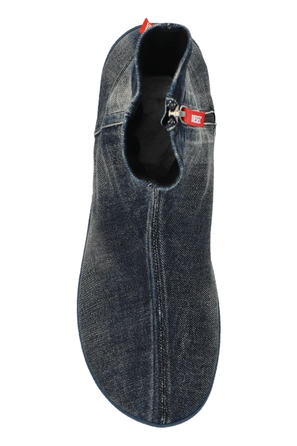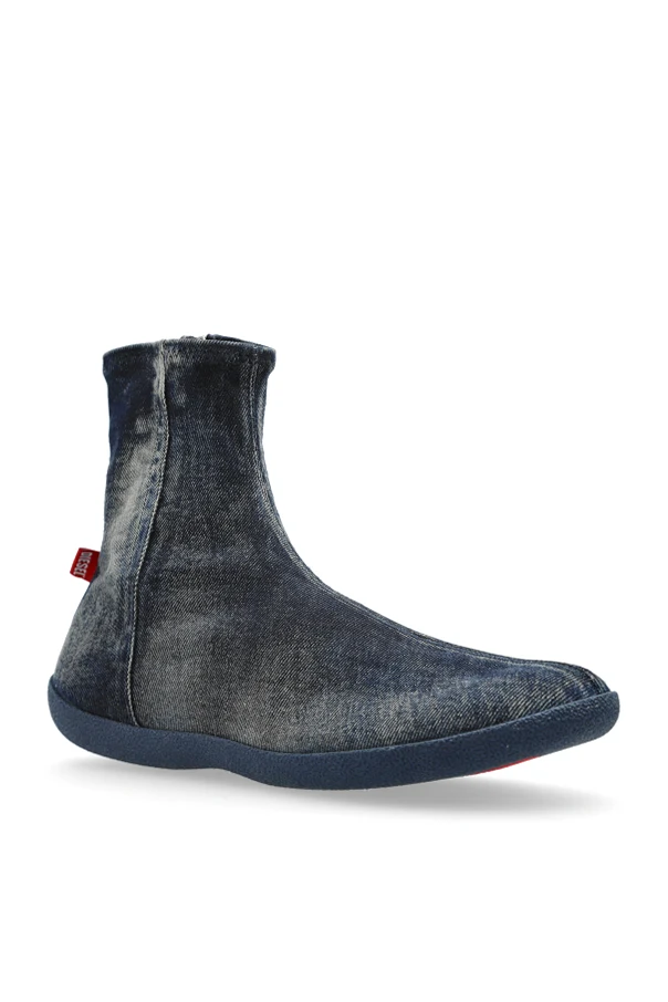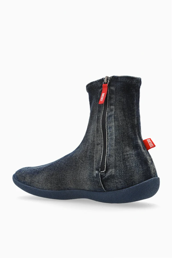 Przedstawiamy Jeansowe buty D-SHOCK D-SHOCK BT od renomowanej marki Diesel. Te ekskluzywne sneakersy high-top, wykonane z materiału przypominającego dżins, to prawdziwe dzieło sztuki współczesnej mody. Dominujący granatowy kolor w połączeniu z efektem postarzenia nadaje im unikalny styl vintage.