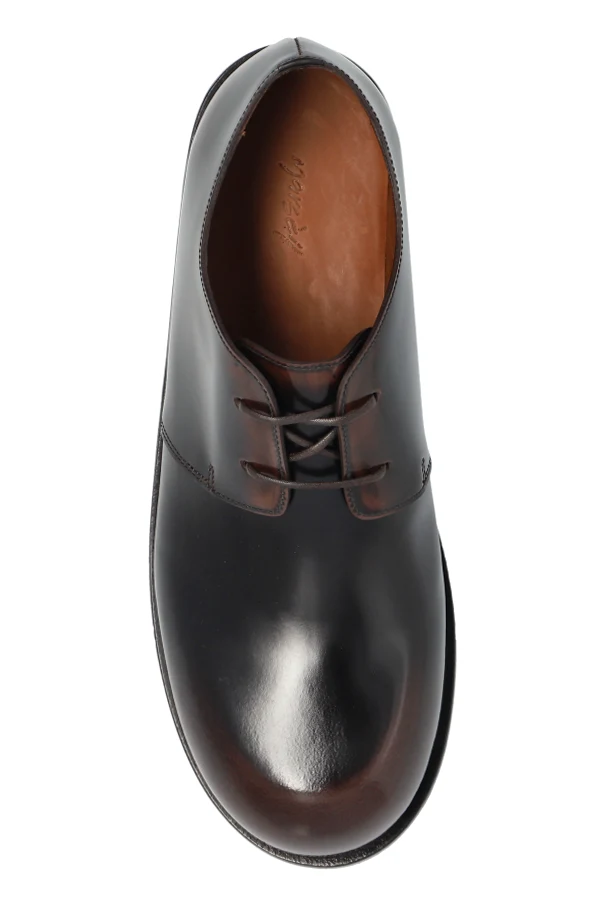 Skórzane buty Muso marki Marsell to wykwintna manifestacja kunsztu włoskiego rzemiosła, która łączy klasykę z nowoczesną subtelnością. Model wyróżnia się ponadczasową sylwetką typu derby/oxford, z wyraźnie zaokrąglonym, lekko poszerzonym noskiem oraz niskim obcasem, podkreślającym harmonijną proporcję.