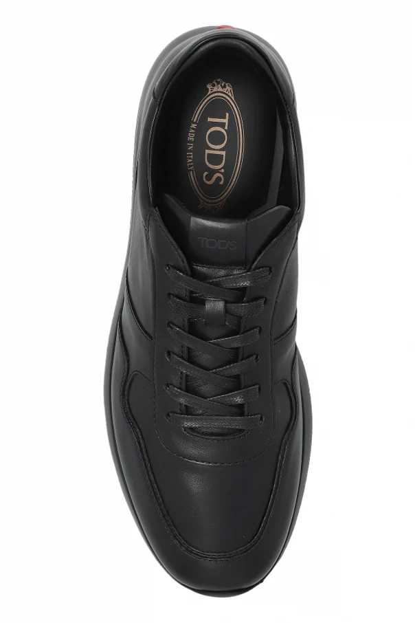 Skórzane buty sportowe marki Tod’s to kwintesencja stylu, w której klasyczny, sportowy fason typu low-top harmonijnie łączy się z wyrafinowanym minimalizmem. Buty odznaczają się smukłą, zaokrągloną linią przodu oraz opływowym kształtem bocznym, podkreślonym przez subtelne przeszycia, budujące szlachetną strukturę obuwia.