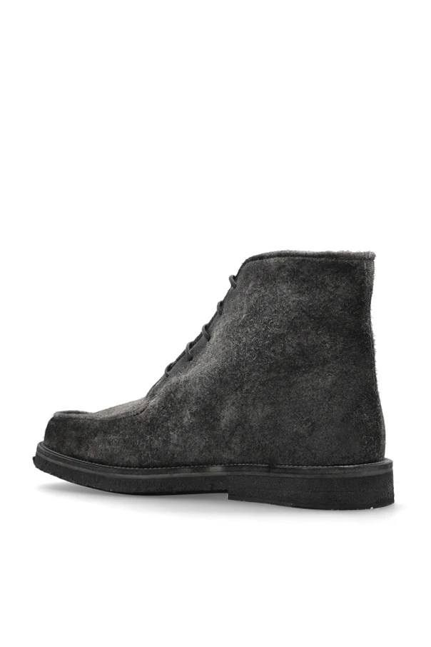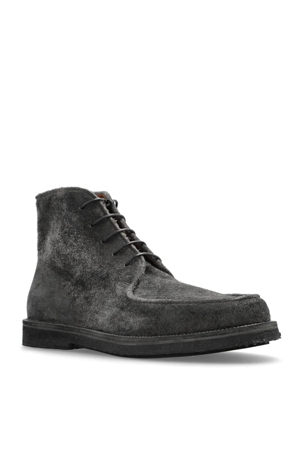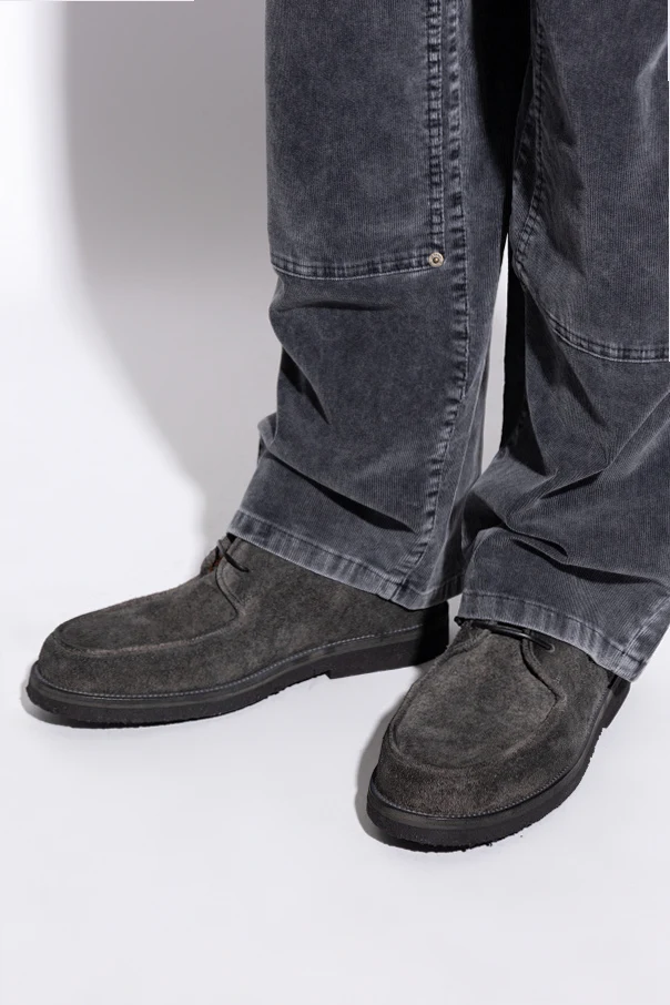 Wysokogatunkowa skóra zamszowa odznacza się matową, lekko „postarzaną” fakturą, która urzeka miękkością. Płaska, solidna podeszwa z gumy zapewnia doskonałe wsparcie i komfort na każdym kroku. Model sznurowany z czterema parami oczek precyzyjnie dopasowuje się do stopy, oferując elegancję oraz wygodę.