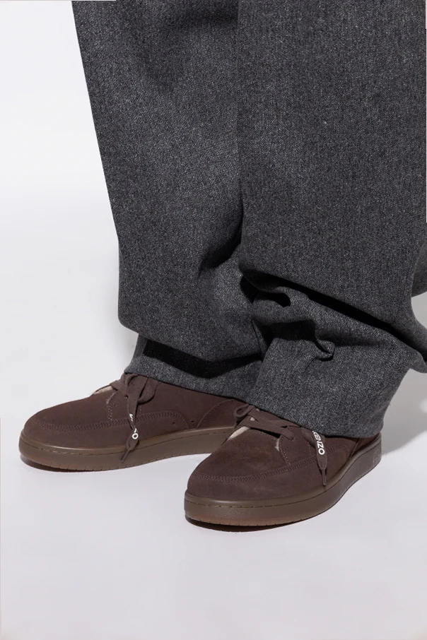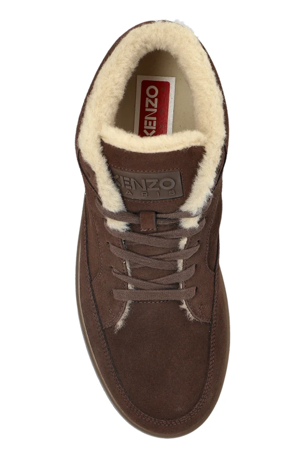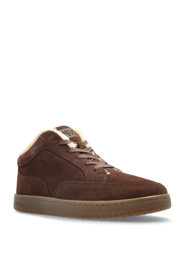 Buty sportowe ‘Dome’ autorstwa Kenzo to kwintesencja wyszukanej elegancji oraz funkcjonalności ulicznego stylu. Charakterystyczny, wysoki profil botków z precyzyjnie uformowaną, zaokrągloną linią harmonijnie łączy się z wyrafinowaną cholewką wykonaną z szlachetnego brązowego zamszu. Wnętrze ocieplane jasnym, miękkim futerkiem, inspirowanym naturalną wełną, zapewnia niezrównany komfort oraz ochronę w chłodne dni.