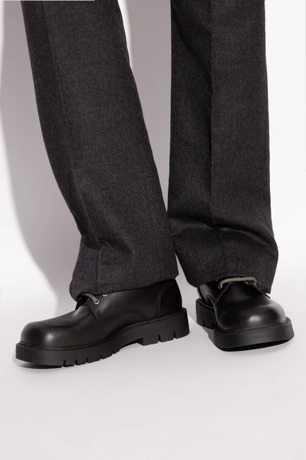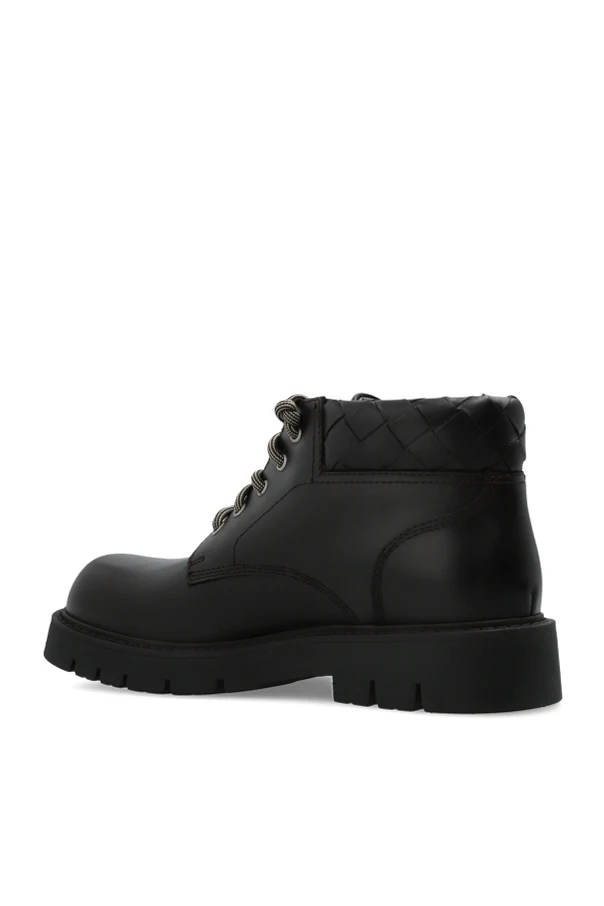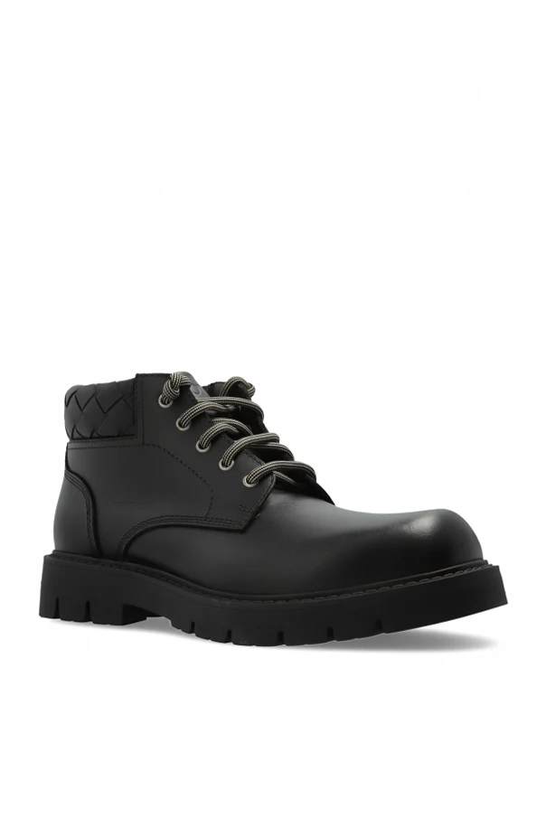 Skórzane buty ‘Haddock’ z prestiżowej kolekcji Bottega Veneta łączą klasyczną elegancję z wyrafinowanym rzemiosłem. Ich masywna sylwetka, zaokrąglony nosek oraz wyraziście profilowana, traktorowa podeszwa harmonizują z minimalistyczną cholewką sięgającą powyżej kostki, gwarantując niepowtarzalny charakter oraz solidne wsparcie.