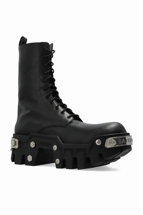 Skórzane buty Bulldozer projektu Balenciaga urzekają wyrafinowaną formą, harmonijnie łączącą potęgę z subtelną elegancją. Dominujący kolor czarny podkreśla ich szlachetny charakter, nadając im uniwersalności i wyrazistej prezencji.
