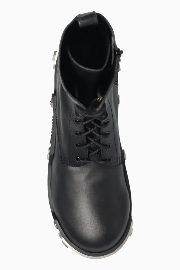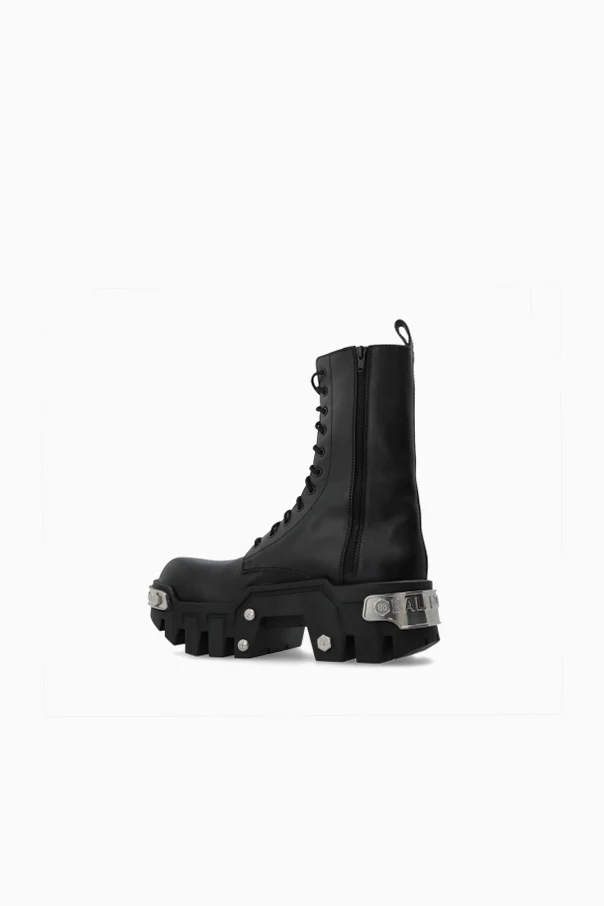 Buty wyróżniają się masywną bryłą oraz wysoką cholewką, sięgającą powyżej kostki, inspirowaną klasycznym stylem glanów. Cholewka, starannie wykonana z gładkiej skóry licowej, tworzy spójną całość z niezwykle solidną, traktorową podeszwą o kanciastych krawędziach. Zastosowanie najwyższej jakości skóry oraz wytrzymałej gumy gwarantuje niezrównany komfort użytkowania i ponadczasową trwałość.