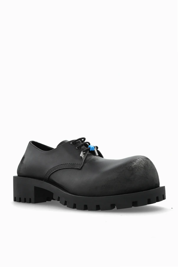 Buty Hummer typu derby marki Balenciaga to wyraz śmiałej estetyki o niepowtarzalnym, industrialnym charakterze. Ich masywna sylwetka, szeroka i zaokrąglona linia przodu oraz wyraźnie zaznaczony nosek przykuwają wzrok, a minimalistyczna forma bez zbędnych ozdób czyni obuwie wyjątkowo eleganckim wyborem dla miłośników luksusu.