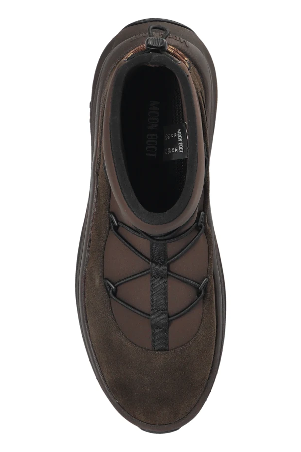 Innowacyjny system elastycznych sznurków, zastępujący klasyczne sznurowadła, umożliwia bezproblemowe wsuwanie, podkreślając nonszalancki charakter slip-on. Wewnętrzna warstwa z miękkiego materiału oraz solidna, profilowana podeszwa wykonana z gumy gwarantują trwałość i doskonałą przyczepność w wymagających warunkach. Dopracowany akcent w postaci wypukłego logotypu Moon Boot na pięcie podkreśla unikalność oraz charakter tego wyrafinowanego modelu.