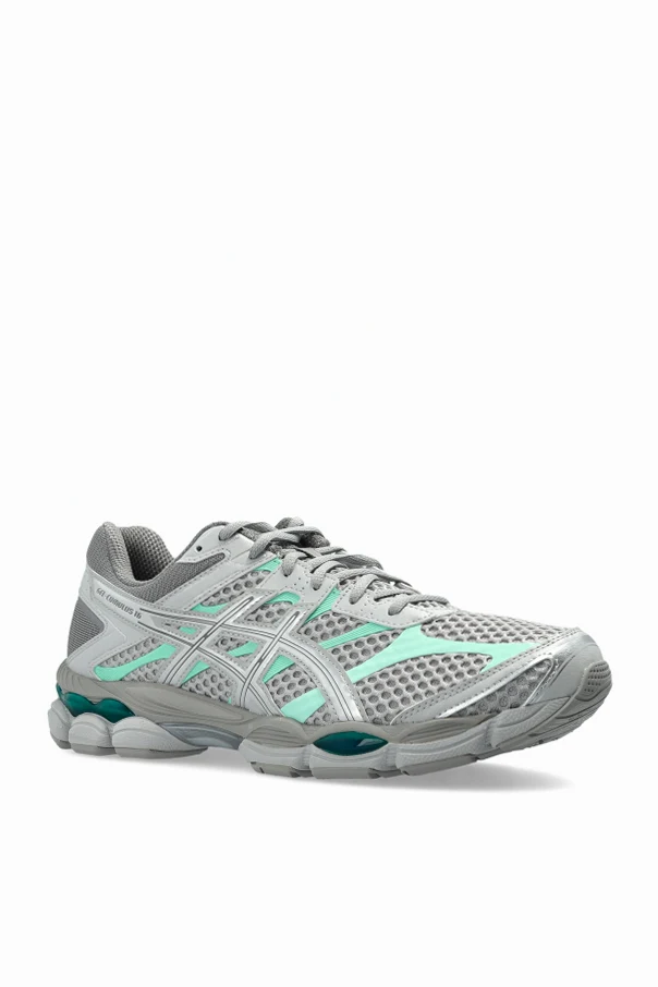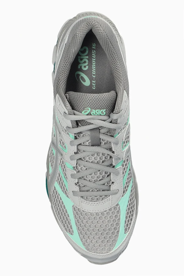 Buty sportowe ‘Gel-Cumulus 16’ marki ASICS to synonim pełnej gracji dynamiki. Klasyczna, lekko masywna sylwetka z niską cholewką harmonijnie łączy nowoczesność z ponadczasowym stylem. Przeważająca szara tonacja urzeka subtelnością, natomiast seledynowe i srebrne akcenty wprowadzają element świeżości.