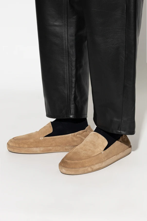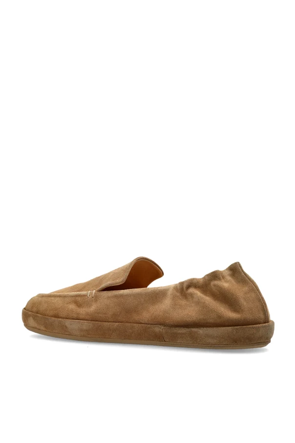 Zamszowe buty Scatopelle to kwintesencja minimalistycznej elegancji stworzona przez renomowaną markę Marsell. Ich klasyczna, prosta sylwetka typu loafers, zaokrąglony czubek oraz subtelnie wyprofilowany kontur doskonale wpisują się w wyszukany kanon współczesnej mody męskiej. Pozbawione zbędnych ozdób i wzorów, zachwycają gładką, matową powierzchnią z najwyższej jakości zamszu, która dodaje im ekskluzywnego charakteru.