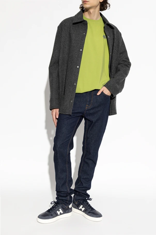 Przedstawiamy buty sportowe H-TV – wyrafinowaną propozycję marki Hogan dla mężczyzn ceniących doskonałość i nowoczesną elegancję. Model o klasycznym fasonie low-top cechuje się zaokrąglonym noskiem, prostą, lekko masywną sylwetką oraz intrygującym połączeniem zamszu i gładkiej skóry w dostojnym, granatowym kolorze. Subtelne, lecz wyraziste elementy z materiału syntetycznego w jasnym odcieniu doskonale harmonizują z dominującą kolorystyką.