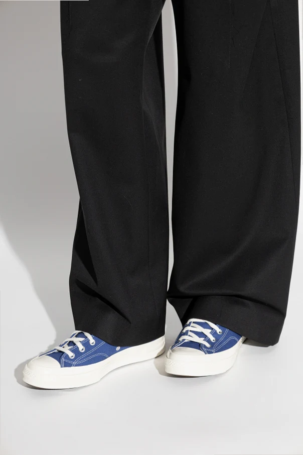 Comme des Garcons Play X CONVERSE to unikatowe połączenie klasyki z awangardą, które zachwyca niepowtarzalnym stylem oraz dopracowaniem detali. Model ten prezentuje się wyjątkowo dzięki granatowej cholewce, wykonanej z trwałego płótna, podkreślonej subtelnymi, kontrastującymi przeszyciami.