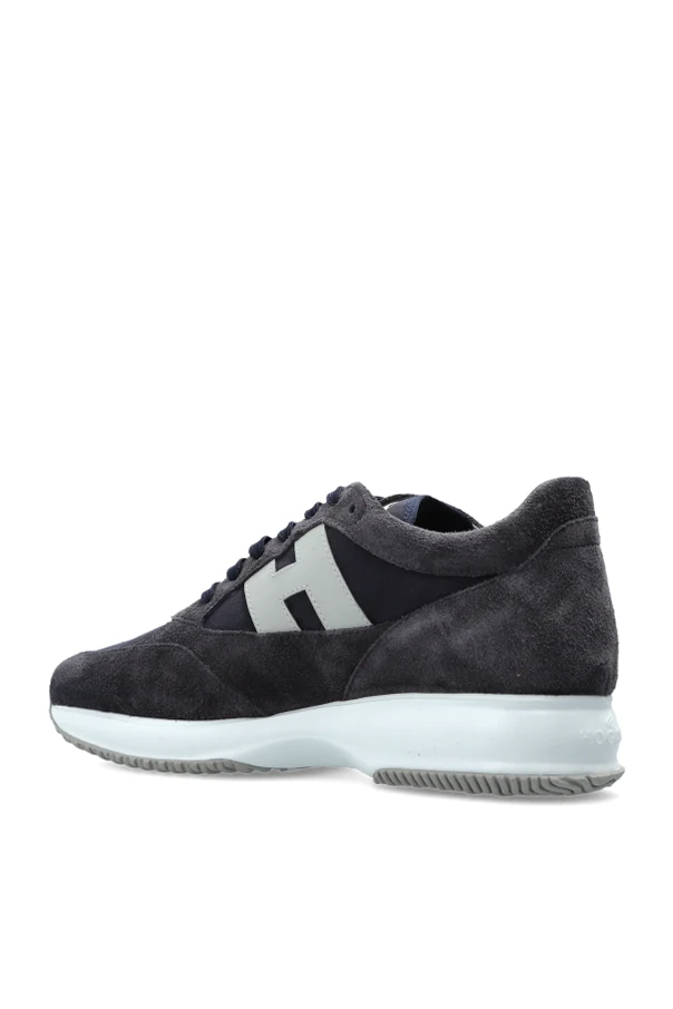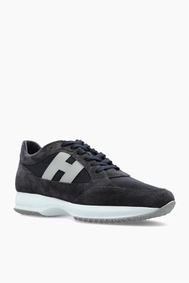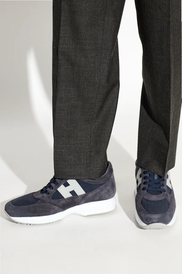 Buty sportowe ‘Interactive’ marki Hogan to kwintesencja wyszukanej elegancji w codziennym wydaniu. Ekskluzywna cholewka, wykonana z mariażu miękkiego zamszu oraz nowoczesnej tkaniny technicznej, została utrzymana w głębokim granatowym odcieniu, podkreślając ponadczasowy styl modelu. Wzrok przykuwa duża aplikacja w formie srebrzystej litery „H” – wyrazisty emblemat prestiżowej marki.