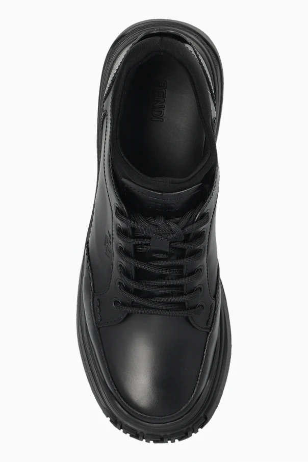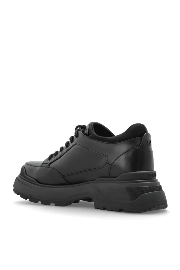 Skórzane buty Force Light to kwintesencja wyrafinowanej elegancji w nowoczesnej odsłonie. Ich masywna sylwetka typu „chunky” zachwyca przemyślaną formą o wyprofilowanej linii pięty i palców oraz szerokiej, geometrycznie tłoczonej podeszwie, na której subtelnie umieszczono rozpoznawalny monogram projektanta.