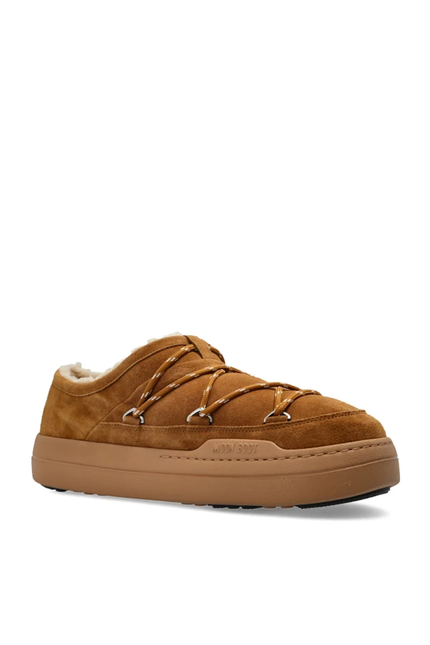 Buty ‘MB PARK SLIPPER’ emanują niezrównaną elegancją i funkcjonalnością, odpowiadając najwyższym oczekiwaniom współczesnego mężczyzny. Ich obniżona cholewka typu slipper oraz zaokrąglony przód harmonijnie łączą sportowy duch z ponadczasową klasyką. Wyjątkowo miękki i szlachetny zamsz w odcieniu brązowym otula stopę, a widoczne, jasne, syntetyczne futro wewnątrz gwarantuje ciepło nawet w najbardziej chłodne dni.