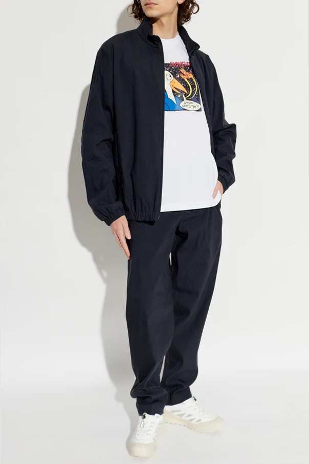 Przemyślane detale, takie jak centralny zamek błyskawiczny, dyskretna stójka oraz czarny emblemat z logo projektanta na lewym rękawie, emanują wyrafinowaniem i podkreślają wyjątkową dbałość o szczegóły. Krój wzbogacony jest o ściągacz w pasie i na mankietach, co zapewnia doskonałe dopasowanie i komfort noszenia.