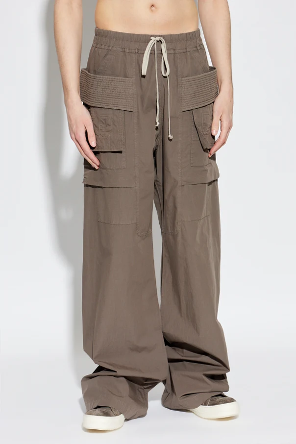 Spodnie typu ‘Cargo’ z szerokimi nogawkami autorstwa Rick Owens DRKSHDW to wyrafinowany wybór dla miłośników ekskluzywnej swobody. Dominujący brązowy kolor harmonizuje z wyrazistą formą i nowoczesnym charakterem streetwearu. Szeroki, luźny fason oraz przedłużone, prostolinijne nogawki nadają sylwetce niewymuszoną elegancję, podkreślając indywidualność użytkownika.