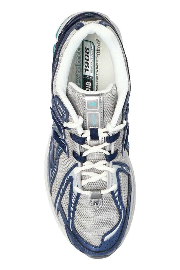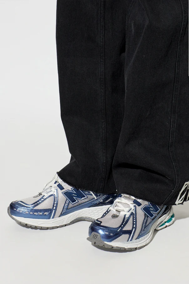 Wielowarstwowa konstrukcja cholewki, gdzie szarość paneli siateczkowych kontrastuje z głębokim, ciemnoniebieskim akcentem i srebrnymi detalami, podkreślona została odblaskowymi wstawkami i dynamicznymi liniami. Po bokach widnieje pokaźne logo „N”, będące znakiem rozpoznawczym marki premium.