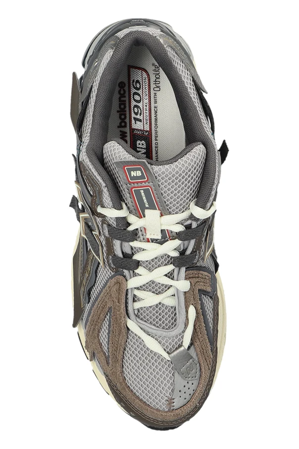 Wyjątkowe połączenie przewiewnej siatki mesh, skóry i materiału syntetycznego gwarantuje komfort użytkowania oraz trwałość. Wytrzymała podeszwa w kontrastujących barwach beżu i czerni, geometryczne detale, duże logo „N” i subtelne oznaczenia modelu podkreślają unikatowość produktu. Warstwowa konstrukcja oraz perforacje zapewniają lekkość i dynamiczny charakter.