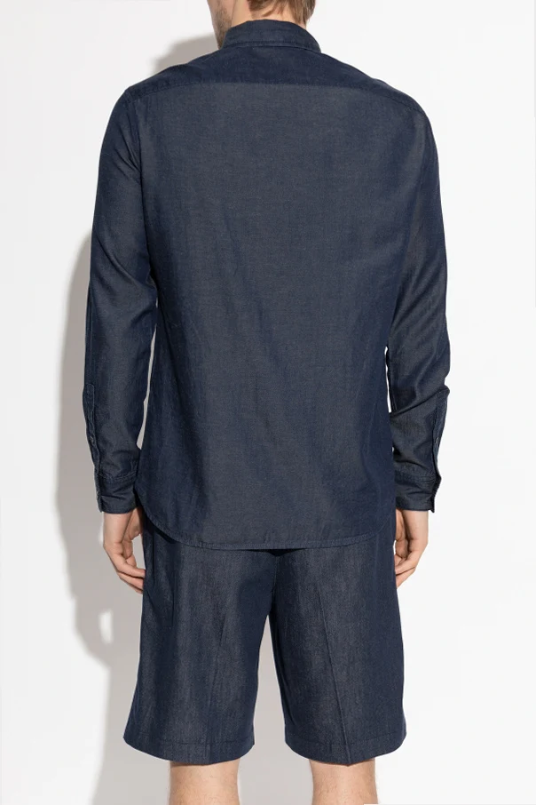 Koszula z wyszytym logo marki Emporio Armani to kwintesencja ponadczasowej elegancji w męskiej garderobie. Klasyczny, prosty fason regular fit, z długim rękawem i zaokrąglonym dołem perfekcyjnie podkreśla sylwetkę, gwarantując jednocześnie komfort noszenia.