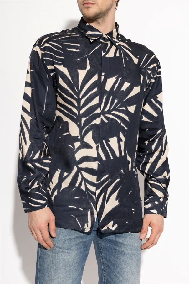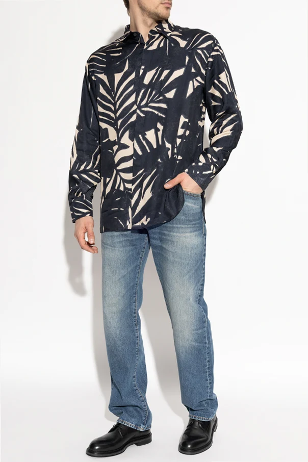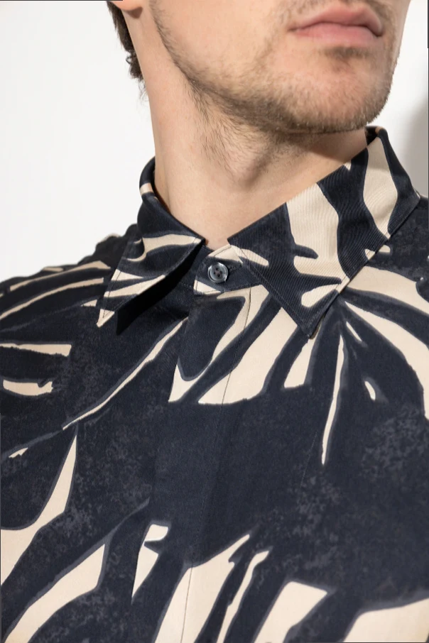 Koszula z nadrukiem marki Emporio Armani to kwintesencja męskiej elegancji w wydaniu codziennym. Utrzymana w granatowym tonie, z wyrazistym, tropikalnym wzorem na jasnokremowej bazie, zachwyca subtelnością i klasą. Prosty, lekko rozluźniony krój z klasycznym kołnierzykiem oraz długimi rękawami podkreśla wyszukany styl tej propozycji.