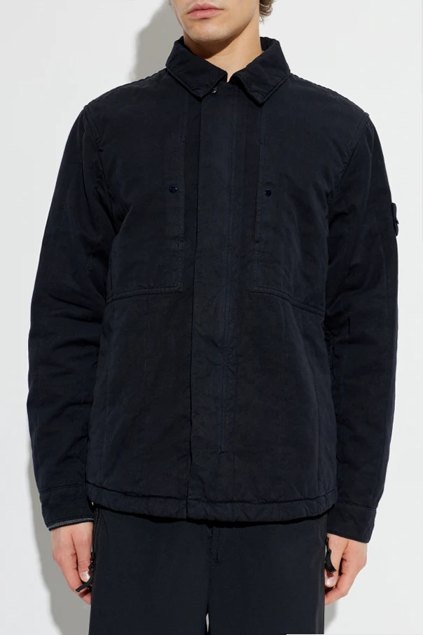 Minimalistyczne detale, takie jak długi rękaw zakończony mankietem na guzik, prosty kołnierz typu koszulowego oraz ukryte guziki pod plisą, podkreślają ekskluzywny, czysty charakter. Dwie pionowe kieszenie na klatce piersiowej oraz wyeksponowana naszywka z logo dodają kurtce unikalnego wyrazu.